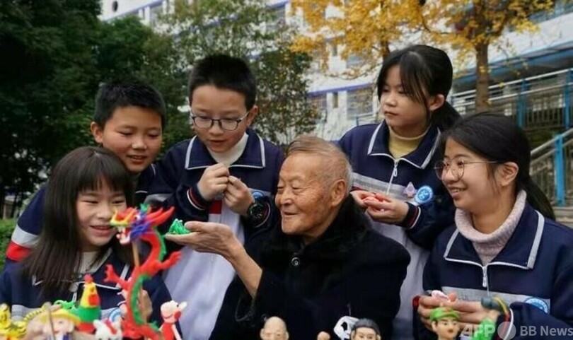 12月上旬、中国西部の四川省(Sichuan)西充県(Xichong)の中学校。教師の紹介を受け、「面人(練り粉で作る人形)」作りの職人、張雄志(Zhang Xiongzhi)さん(74)が生徒の前で腕前を披露した。指先をてきぱきと動かし、簡単な道具を使うと練り粉があっという間にカエルの姿に変わる。無から有が生まれる姿に、教室内に歓声が上がった。