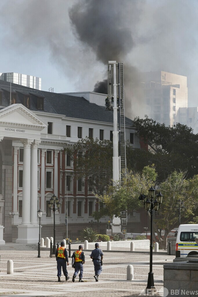 【1月3日 AFP】(更新)南アフリカの国会議事堂で2日未明に発生した火災で同日、男が逮捕された。消防は翌日、火は鎮圧されたと明らかにしたが、この火災で議事堂の大部分が焼けた。