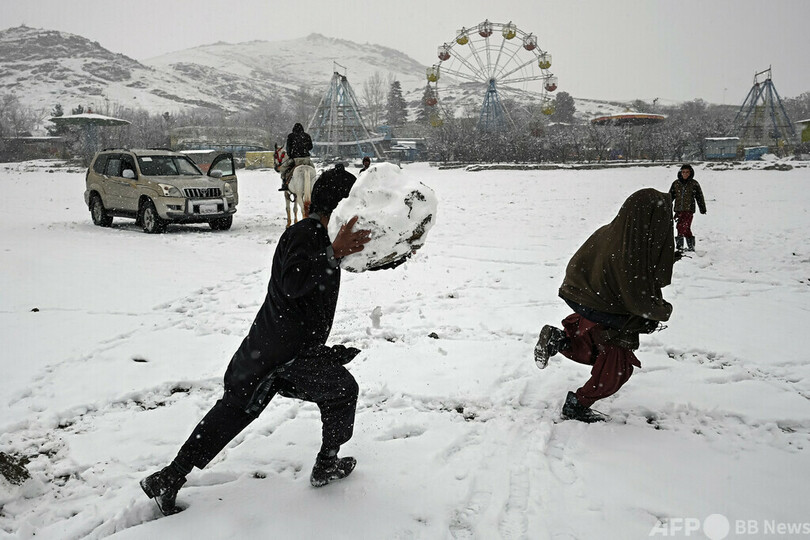 【今日の1枚】童心に帰って雪にはしゃぐ アフガニスタン