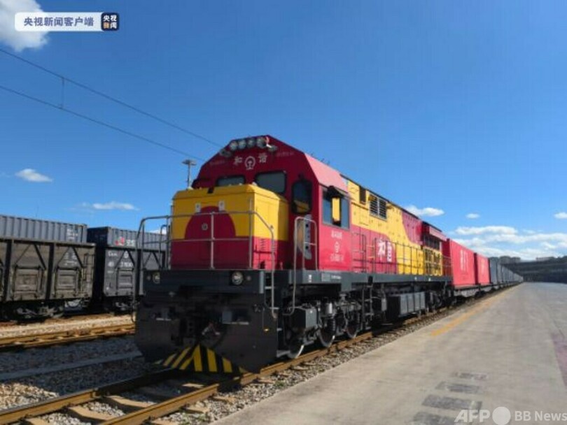 昨年12月3日、中国・ラオス鉄道が開通し、貨物が中国雲南省(Yunnan)の昆明(Kunming)からラオスの首都ビエンチャンに到達する時間が以前の72時間から30時間に短縮されました。輸送貨物は開通当初のゴムや化学肥料、雑貨に加えて現在では電子、太陽光発電、通信関連製品や車、野菜、生花などにも広がっています。1カ月の間、合わせて貨物列車380本を運行しました。現在、国際貨物列車が6本前後運行されています。広州(Guangzhou)、成都(Chengdu)、重慶(Chongqing)、上海など10地区余りが相次いで中国・ラオス鉄道を利用する国際貨物列車を運行しており、昆明を通過してラオスのビエンチャンに到着し、そこからタイ、ミャンマー、マレーシア、カンボジア、シンガポール、バングラデシュなどへ向かいます。(c)CGTN Japanese/AFPBB News