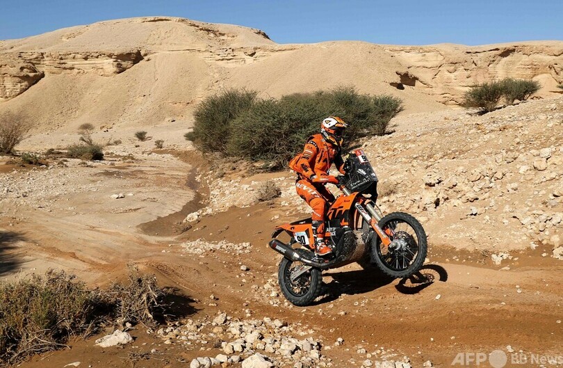 ガスガス・ファクトリーレーシング(GasGas Factory Racing)に所属する2017年大会覇者のサム・サンダーランド(Sam Sunderland、英国)は12位に終わったが、総合争いでは首位を維持した。(c)AFP