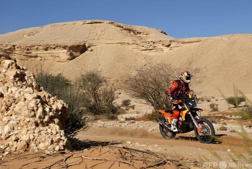 ガスガス・ファクトリーレーシング(GasGas Factory Racing)に所属する2017年大会覇者のサム・サンダーランド(Sam Sunderland、英国)は12位に終わったが、総合争いでは首位を維持した。(c)AFP