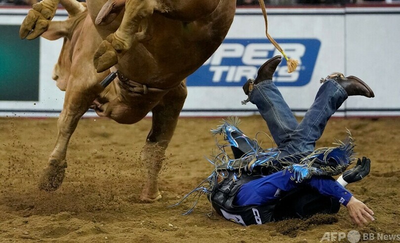 【1月9日 AFP】米ニューヨークのマディソン・スクエア・ガーデン(Madison Square Garden)で7日、ロデオ大会「PBR Unleash The Beast Monster Energy Buckoff」が開催された。(c)AFP