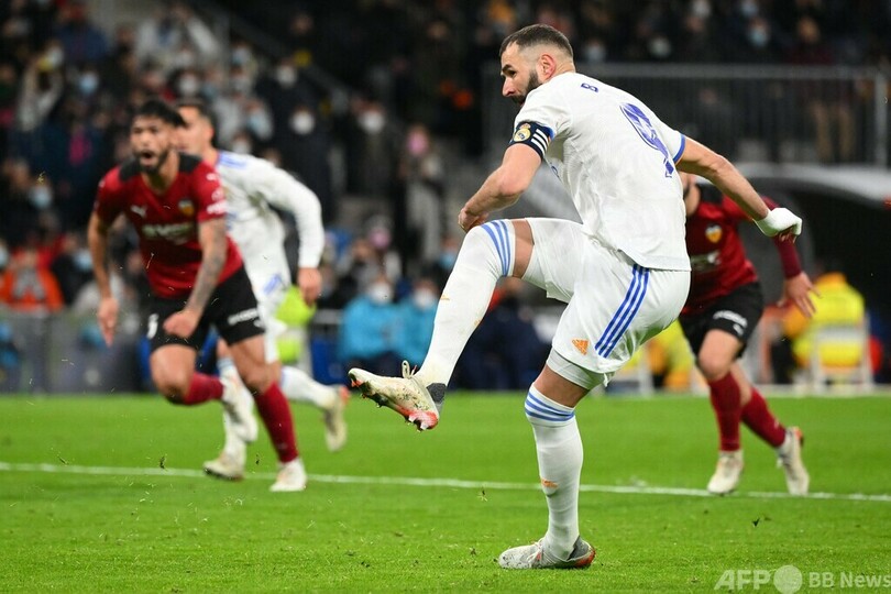 【1月9日 AFP】21-22スペイン1部リーグは8日、第20節の試合が行われ、首位レアル・マドリード(Real Madrid)はカリム・ベンゼマ(Karim Benzema)とビニシウス・ジュニオール(Vinicius Junior)が2得点ずつ記録し、4-1でバレンシア(Valencia CF)に勝利した。