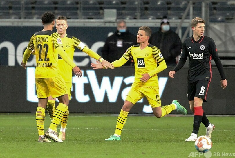 【1月9日 AFP】21-22ドイツ・ブンデスリーガ1部は8日、第18節の試合が行われ、2位ボルシア・ドルトムント(Borussia Dortmund)は終盤にジュード・ベリンガム(Jude Bellingham)とマフムド・ダフド(Mahmoud Dahoud)が得点し、フランクフルト(Eintracht Frankfurt)に3-2で劇的な逆転勝利を収めた。首位バイエルン・ミュンヘン(Bayern Munich)との差を6ポイントに縮めた。