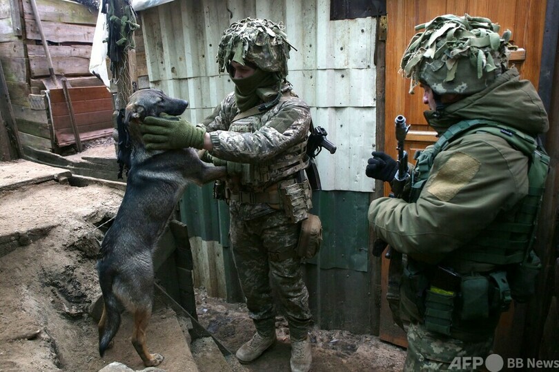 【1月13日 AFP】ロシアの大軍が国境付近に集結し、戦争の危機が迫る中、ウクライナ東部の塹壕(ざんごう)で、兵士は野良猫や野良犬との思いがけない触れ合いに慰めを見いだしている。