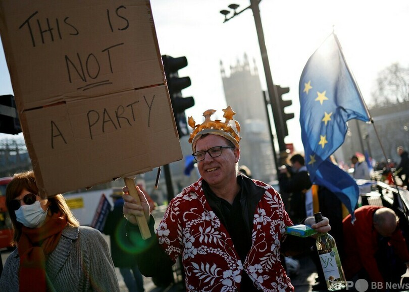 主要野党3党はいずれも首相の辞任を要求している。また、首相が2020年5月のパーティーに参加したことを謝罪して以降は、与党内からも辞任を求める声が出ている。(c)AFP/Joe JACKSON