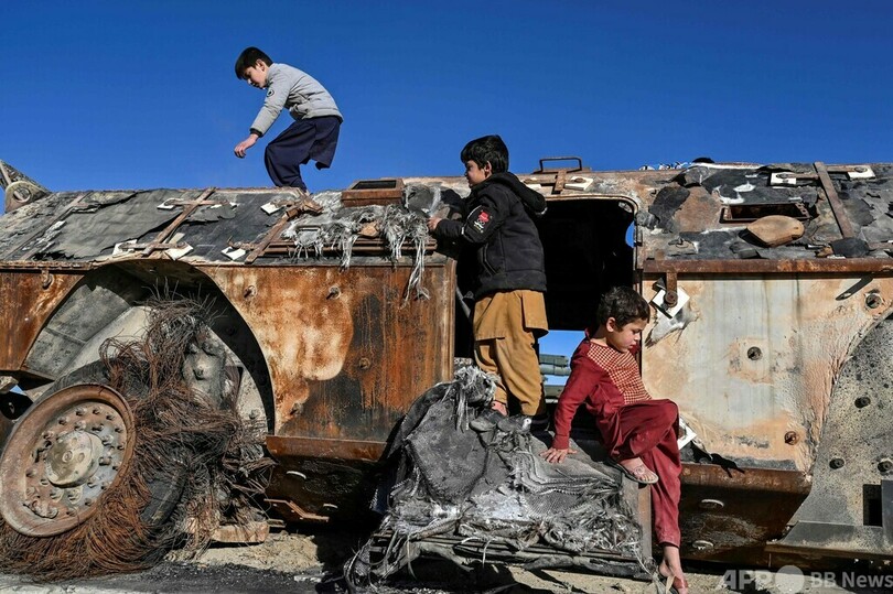 ガズニ州郊外の道路にも、タリバンの勝利をたたえる物が展示品のように残っている。米軍の装甲車の残がいだ。武器は奪い去られ、パンクしたタイヤはぼろぼろになっている。