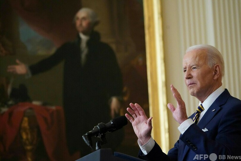 バイデン氏は就任から20日で1年になるのに合わせて会見。ロシアのウラジーミル・プーチン(Vladimir Putin)大統領は戦争を望んでいないはずだと述べる一方、「私の推測では(ウクライナに)侵入するだろう。何らかの行動を起こす必要があるからだ」として、ロシアが米国を試すために「小規模な侵入」を行うとの見方を示した。
