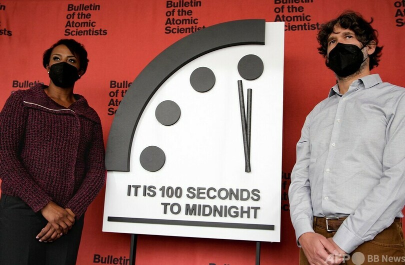 【1月21日 AFP】米誌「ブレティン・オブ・ジ・アトミック・サイエンティスツ(Bulletin of the Atomic Scientists)」は20日、人類が滅亡するまでの残り時間を象徴的に示す「終末時計(Doomsday Clock)」の針は、今年も過去最短の100秒に据え置くと発表した。新型コロナウイルスワクチンなどの進歩があったものの、偽情報の増加といった他の脅威が浮上した。