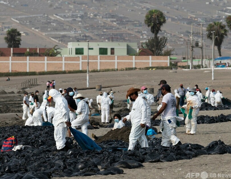 政府によると、15日の噴火の影響で発生した高波により、首都リマ近郊の製油所で荷降ろし中だったタンカーから6000バレルの原油が流出。21か所の浜辺が汚染されたため、90日間の環境非常事態を宣言し、被害区域の「持続可能な管理」を行うとしている。