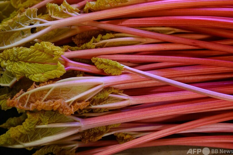 暗闇で栽培される柔らかくて甘いルバーブ 英ヨークシャー