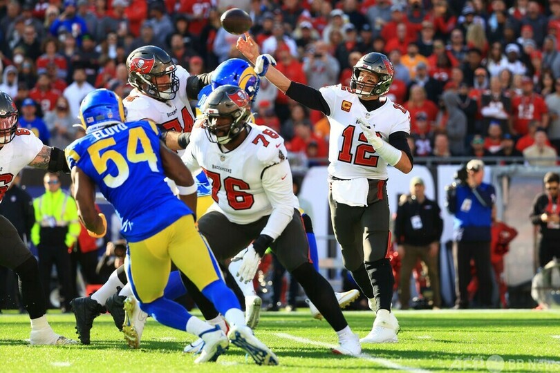 【1月24日 AFP】21NFLは23日、プレーオフのカンファレンス準決勝が行われ、ロサンゼルス・ラムズ(Los Angeles Rams)はマット・ゲイ(Matt Gay)が終了直前に決勝フィールドゴール(FG)を決め、QBトム・ブレイディ(Tom Brady)を擁する王者タンパベイ・バッカニアーズ(Tampa Bay Buccaneers)を30-27で破った。