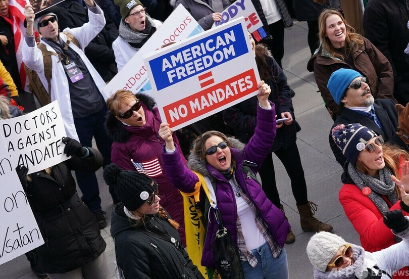 【1月24日 AFP】米首都ワシントンで23日、新型コロナウイルスワクチンの接種義務化に反対する大規模集会が開かれた。参加者は「自由」を求めるプラカードを掲げ、ジョー・バイデン(Joe Biden)政権による接種義務化は「専制政治」だと声を上げた。