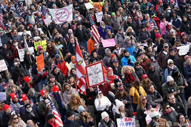 【1月24日 AFP】米首都ワシントンで23日、新型コロナウイルスワクチンの接種義務化に反対する大規模集会が開かれた。参加者は「自由」を求めるプラカードを掲げ、ジョー・バイデン(Joe Biden)政権による接種義務化は「専制政治」だと声を上げた。