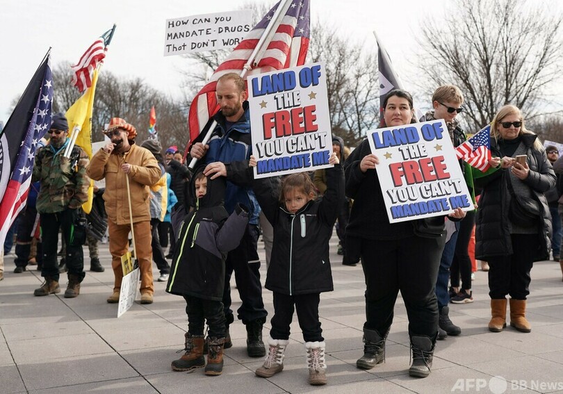 【1月24日 AFP】米首都ワシントンで23日、新型コロナウイルスワクチンの接種義務化に反対する大規模集会が開かれた。参加者は「自由」を求めるプラカードを掲げ、ジョー・バイデン(Joe Biden)政権による接種義務化は「専制政治」だと声を上げた。