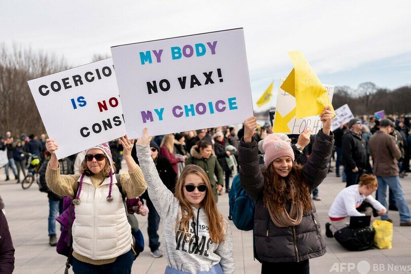 【1月24日 AFP】米首都ワシントンで23日、新型コロナウイルスワクチンの接種義務化に反対する大規模集会が開かれた。参加者は「自由」を求めるプラカードを掲げ、ジョー・バイデン(Joe Biden)政権による接種義務化は「専制政治」だと声を上げた。