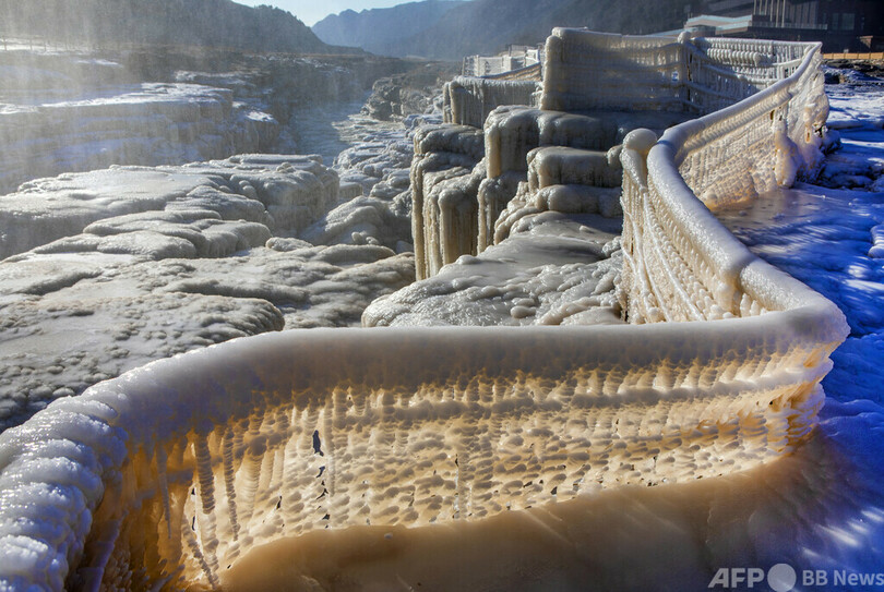 【1月25日 CNS】中国西部・陝西省(Shaanxi)の黄河にある壺口瀑布(Hukou Waterfall)で、持続的な冷え込みにより「氷の世界」が広がっている。