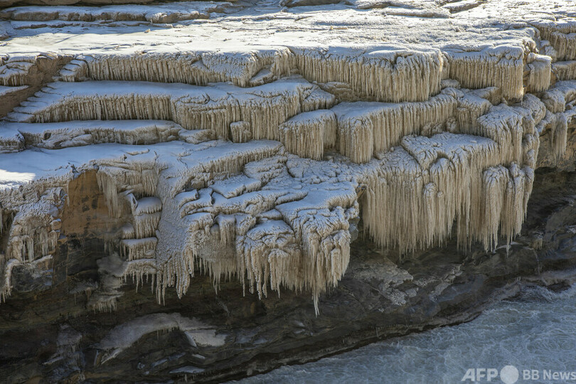 【1月25日 CNS】中国西部・陝西省(Shaanxi)の黄河にある壺口瀑布(Hukou Waterfall)で、持続的な冷え込みにより「氷の世界」が広がっている。