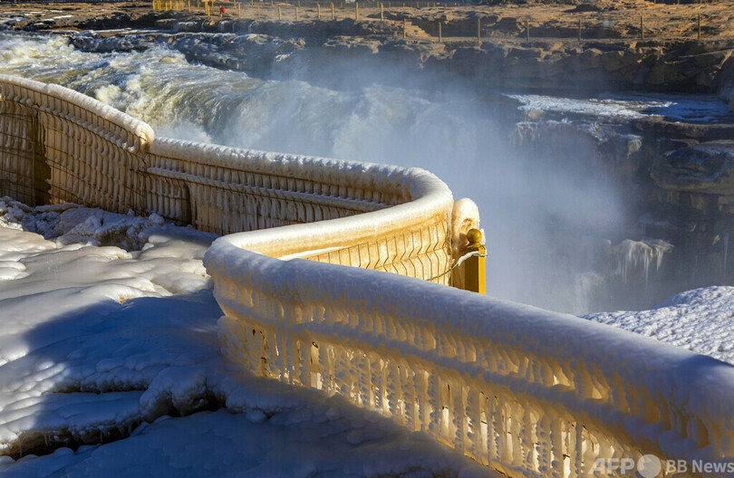 【1月25日 CNS】中国西部・陝西省(Shaanxi)の黄河にある壺口瀑布(Hukou Waterfall)で、持続的な冷え込みにより「氷の世界」が広がっている。