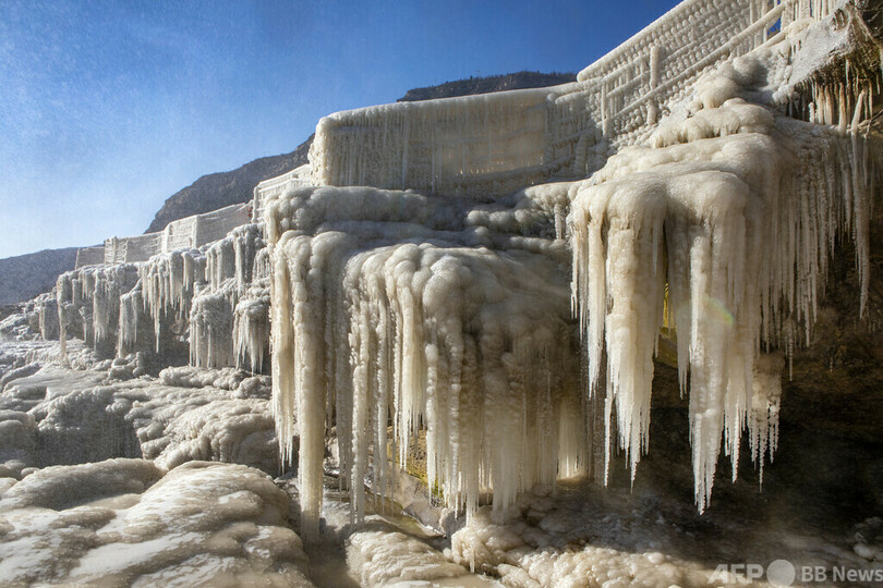 黄河の滝に広がる氷の世界 自然が作った氷の彫刻