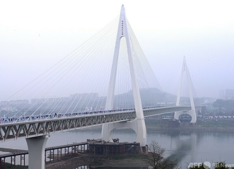 同橋は重慶市住宅都市・農村建設委員会が組織・実施し、重慶城投集団と中交二航局が共同で投資・建設を進めたものです。橋の全長は1384メートル、メインスパン660メートルとなっており、世界で最大規模のスパンとなる道路・鉄道両用の鋼トラス斜張橋になります。(c)CGTN Japanese/AFPBB News