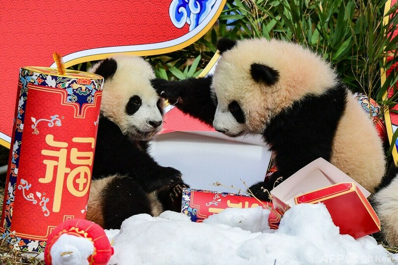 パンダも春節ムード 中国・四川
