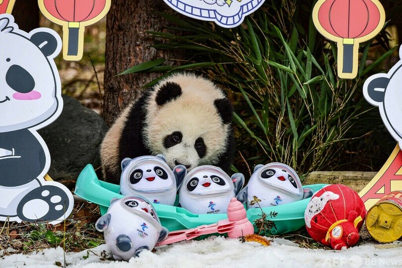 パンダも春節ムード 中国・四川