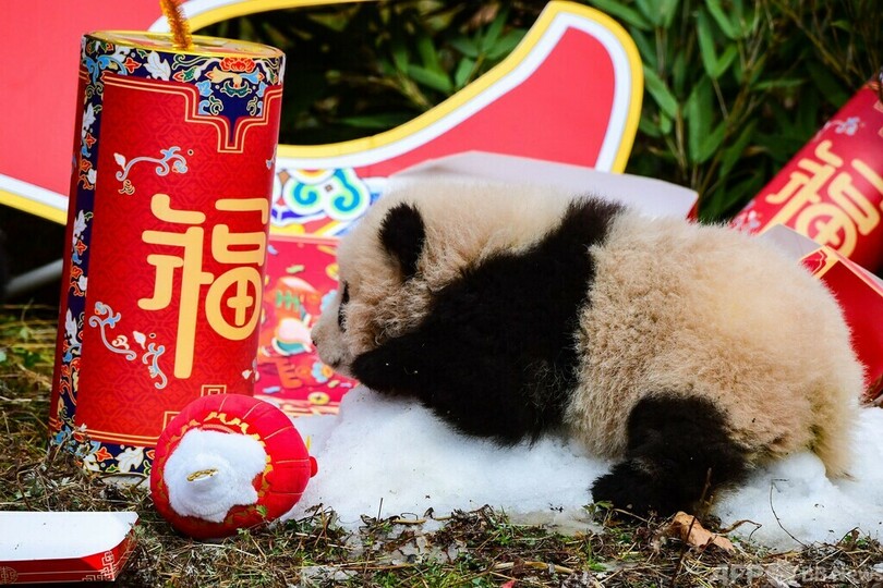 【1月26日 AFP】春節(旧正月、Lunar New Year)を約1週間後に控えた24日、中国南西部の四川(Sichuan)省ブン川(Wenchuan、ブンはさんずいに文)県にある「臥龍パンダ保護研究センター(Wolong National Nature Reserve)」では、春節向けの飾りの中で元気に遊びまわる子どものパンダの姿を見ることができた。(c)AFP
