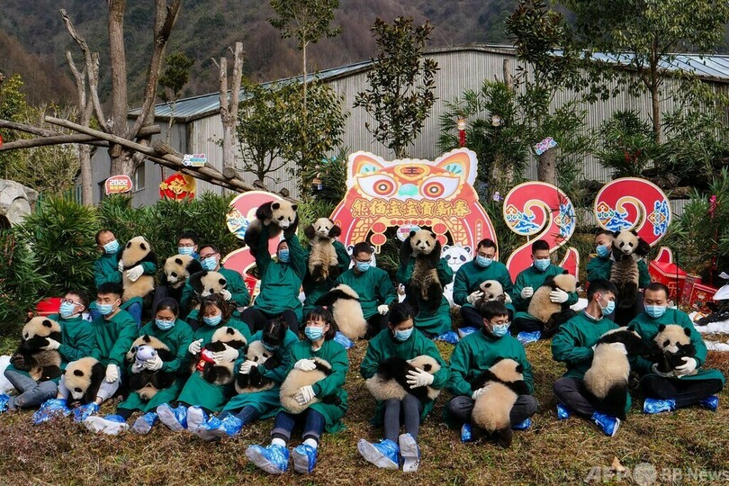 【1月26日 AFP】春節(旧正月、Lunar New Year)を約1週間後に控えた24日、中国南西部の四川(Sichuan)省ブン川(Wenchuan、ブンはさんずいに文)県にある「臥龍パンダ保護研究センター(Wolong National Nature Reserve)」では、春節向けの飾りの中で元気に遊びまわる子どものパンダの姿を見ることができた。(c)AFP