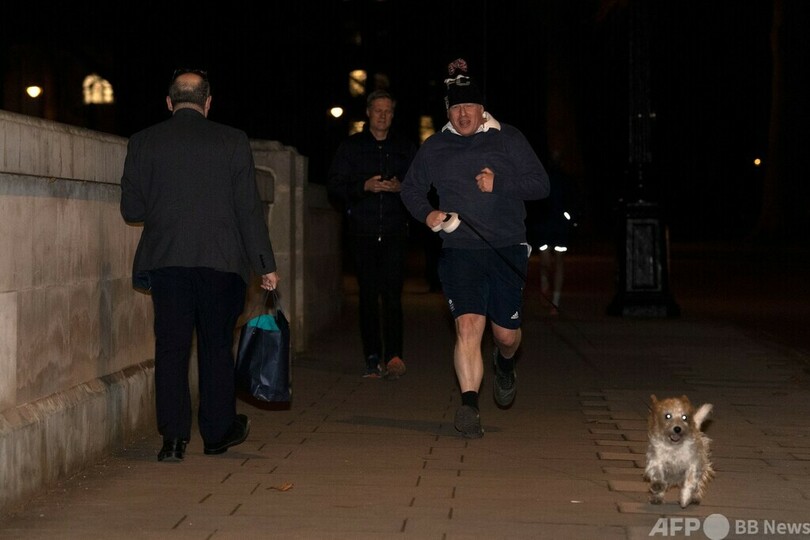 【1月27日 AFP】英首都ロンドンのウェストミンスター(Westminster)で26日、ボリス・ジョンソン(Boris Johnson)首相が愛犬を連れてジョギングする姿が撮影された。