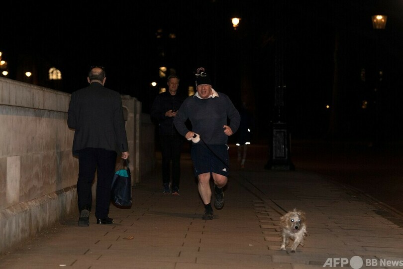 【1月27日 AFP】英首都ロンドンのウェストミンスター(Westminster)で26日、ボリス・ジョンソン(Boris Johnson)首相が愛犬を連れてジョギングする姿が撮影された。