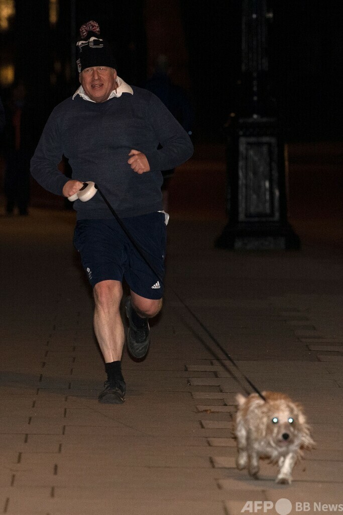 【1月27日 AFP】英首都ロンドンのウェストミンスター(Westminster)で26日、ボリス・ジョンソン(Boris Johnson)首相が愛犬を連れてジョギングする姿が撮影された。