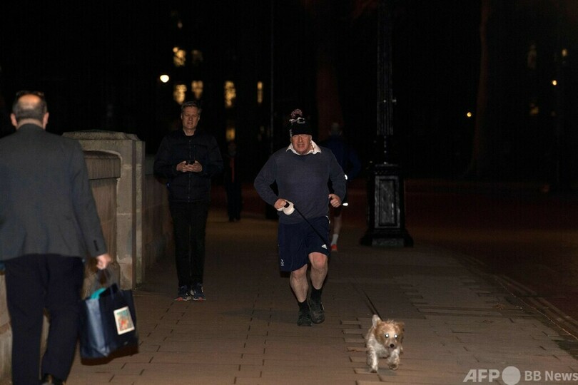 【1月27日 AFP】英首都ロンドンのウェストミンスター(Westminster)で26日、ボリス・ジョンソン(Boris Johnson)首相が愛犬を連れてジョギングする姿が撮影された。