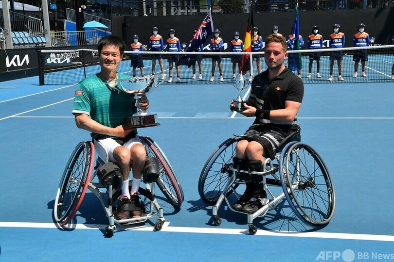 【1月27日 AFP】全豪オープンテニス(Australian Open Tennis Tournament 2022)は27日、車いすの部の男子シングルス決勝が行われ、大会第1シードの国枝慎吾(Shingo Kunieda)は第2シードのアルフィー・ヒューエット(Alfie Hewett、英国)を7-5、3-6、6-2で下し、優勝を果たした。(c)AFP