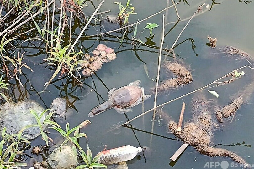 野生生物と爬虫(はちゅう)類の保護活動団体に属する専門家、スハス・パワル(Suhas Pawar)氏は、インドハコスッポン57匹が死に、6匹が保護されたと述べた。地元住民が池で違法に養殖している魚をハコスッポンが食べてしまうため、毒殺された可能性が高いという。