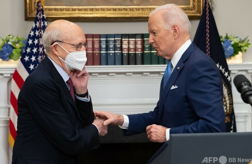 11月の中間選挙では、共和党が上院を奪還する可能性が高まっており、そうなれば最高裁判事の承認手続きも同党が主導することになる。そのためリベラル派は、バイデン氏が選挙前に後任人事案を上院で通過させられるよう、ブライヤー氏に対し早期退任を求めていた。(c)AFP/Sebastian Smith