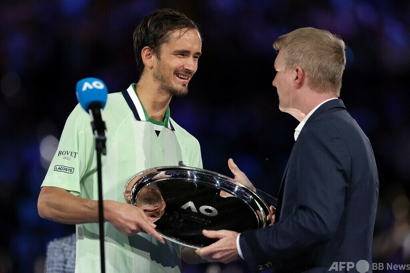 一方のメドベージェフは、4か月前の全米オープンテニス(US Open Tennis Championships 2021)でジョコビッチの21回目のグランドスラム優勝と年間グランドスラムの達成を阻み、今回はナダルに対して同じことを狙っていたが、ジョコビッチに敗れた昨年に続き、全豪オープンでは2年連続で決勝で涙をのむ結果となった。(c)AFP