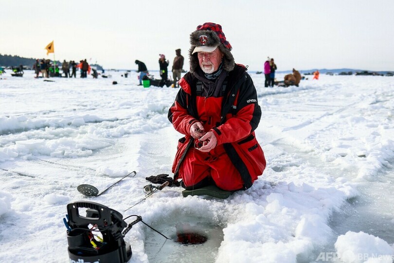 世界最大規模の氷上釣り大会に1万人 米ミネソタ州