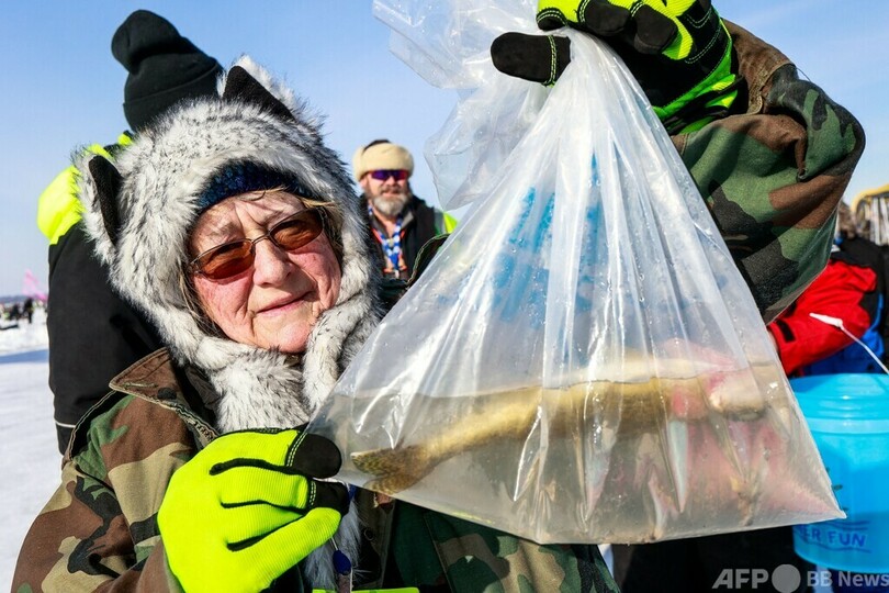 世界最大規模の氷上釣り大会に1万人 米ミネソタ州
