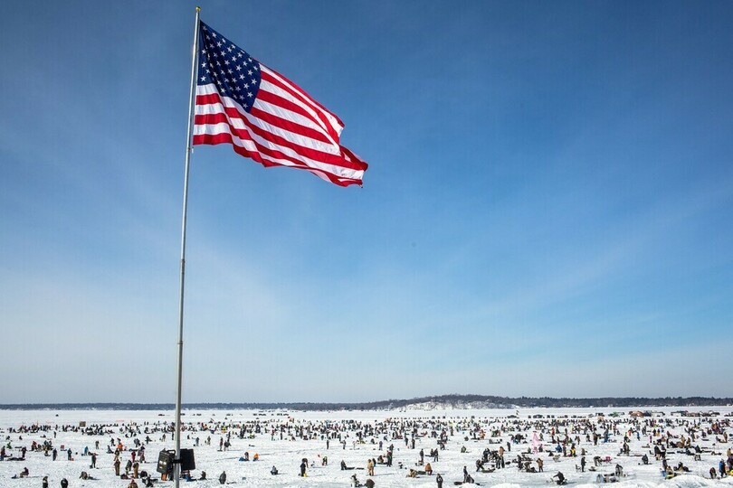 世界最大規模の氷上釣り大会に1万人 米ミネソタ州