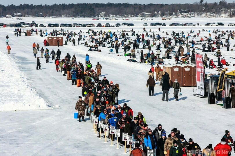 世界最大規模の氷上釣り大会に1万人 米ミネソタ州
