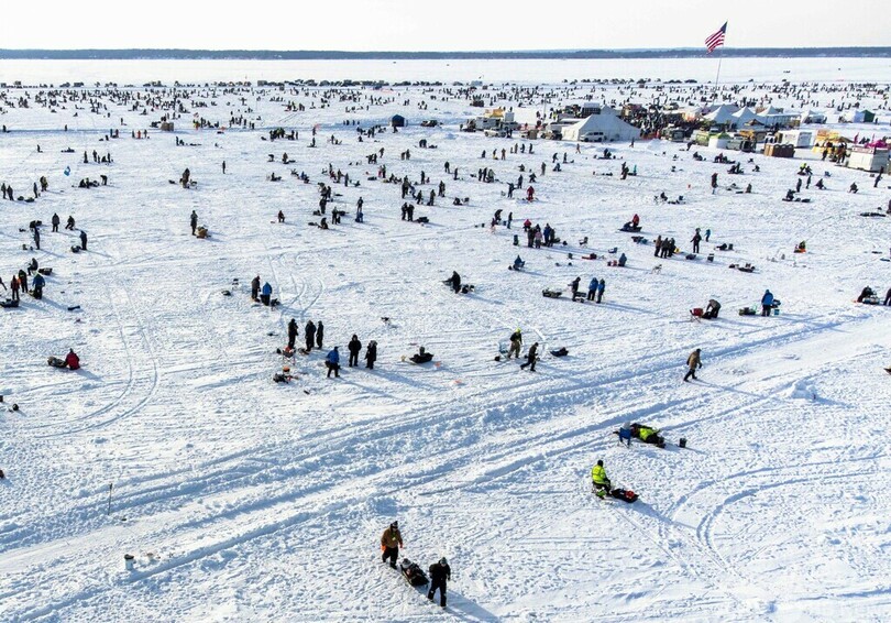 世界最大規模の氷上釣り大会に1万人 米ミネソタ州