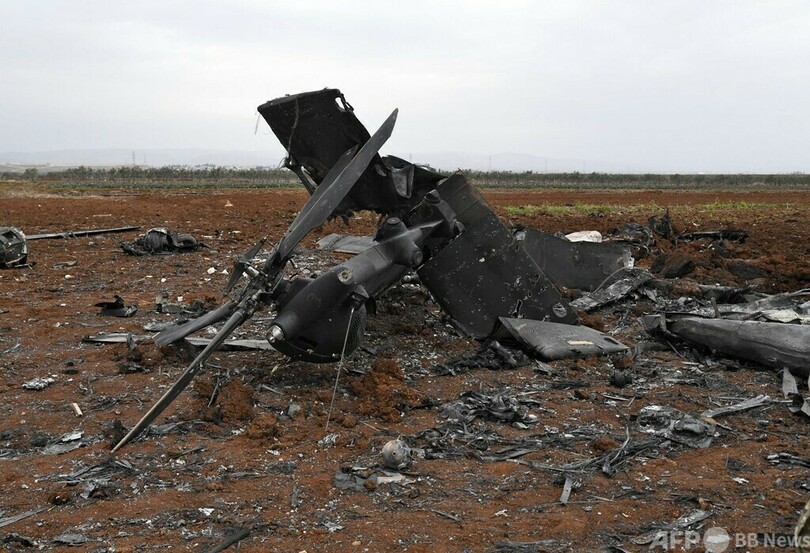 米部隊側に犠牲者は出なかったが、米高官によると、使用されたヘリコプターのうちの1機が故障したため、破壊する措置が取られた。シリア北部アレッポ(Aleppo)県で、焼け焦げたヘリの残骸が撮影されている。