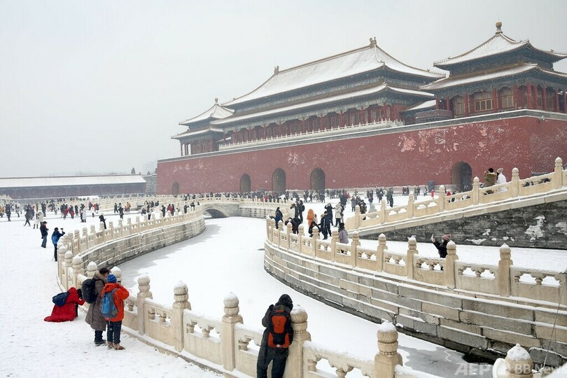 北京・故宮が雪景色 別世界を楽しむ市民