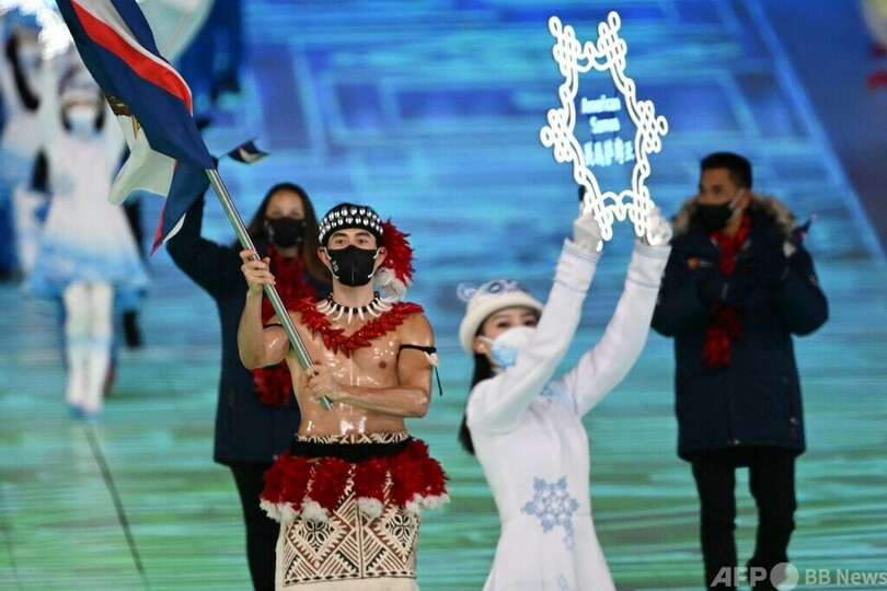 米領サモア、上半身裸で入場行進 氷点下の北京五輪開会式