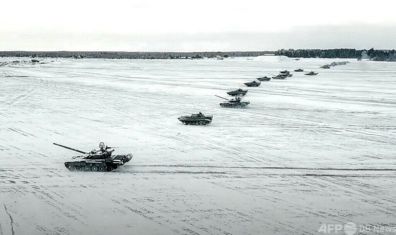 ニュース 政治・経済 ロシアとベラルーシ、合同軍事訓練 2022年2月5日 12:14 発信地:ブレスト/ベラルーシ [ ベラルーシ ロシア・CIS ] このニュースをシェア ‹ › ❮ 3/4 ❯ ベラルーシの演習場で実施されたロシアとの合同軍事訓練。ロシア国防省が公開した映像より(2022年2月4日公開)。(c)AFP PHOTO/ RUSSIAN DEFENCE MINISTRY 画像作成中 ! 【2月5日 AFP】ロシア国防省は4日、ベラルーシとの合同軍事訓練の映像を公開した。ベラルーシの演習場で実施された。(c)AFP 政治・経済 一覧へ> メディア・報道関係・法人の方向け 写真・動画 購入のお問合せ>