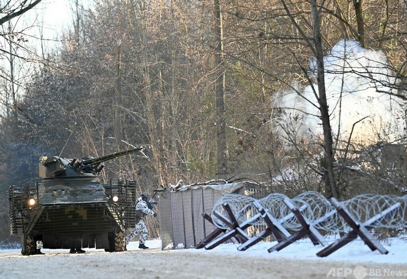 ロシア軍侵攻の懸念が高まる中、訓練は実弾を使って行われた。ロシアはウクライナとの国境付近に10万人以上の部隊を集結。ウクライナのすぐ北にあるベラルーシにも合同軍事演習のために部隊を派遣している。