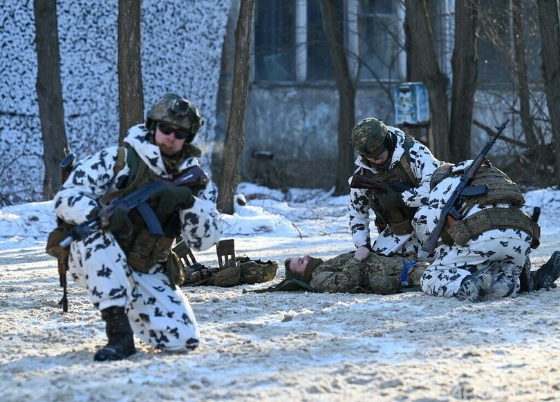 この訓練は、ロシア軍の全面侵攻ではなく、建物を占拠して国内の不安をあおる恐れのある潜入工作員の脅威に備えるものだ。ロシアが2014年にクリミア(Crimea)半島を併合し、ウクライナ東部の分離独立紛争をあおり始めた時にも、工作員が潜入した。(c)AFP/Max DELANY