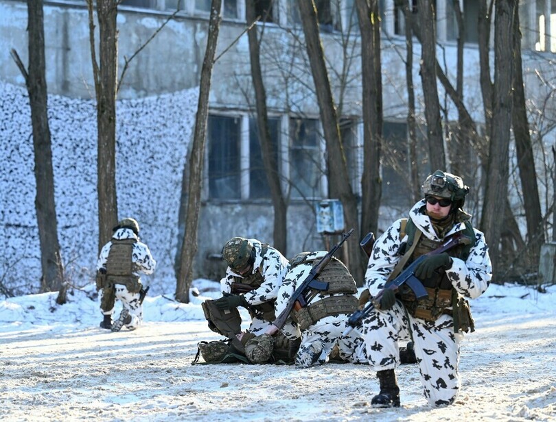 この訓練は、ロシア軍の全面侵攻ではなく、建物を占拠して国内の不安をあおる恐れのある潜入工作員の脅威に備えるものだ。ロシアが2014年にクリミア(Crimea)半島を併合し、ウクライナ東部の分離独立紛争をあおり始めた時にも、工作員が潜入した。(c)AFP/Max DELANY